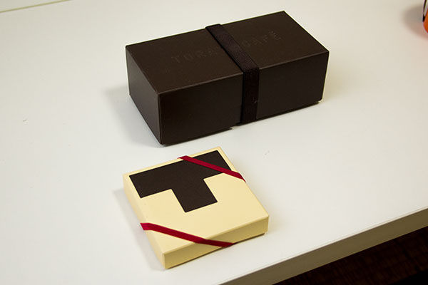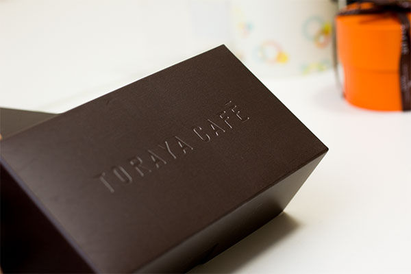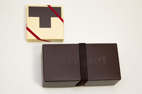 表面は、TORAYA CAFE の文字が、型押しされています。