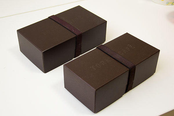 茶色の大きい方の箱は、餡ペーストであったり、パウンドケーキなどの焼き菓子が入ります。
