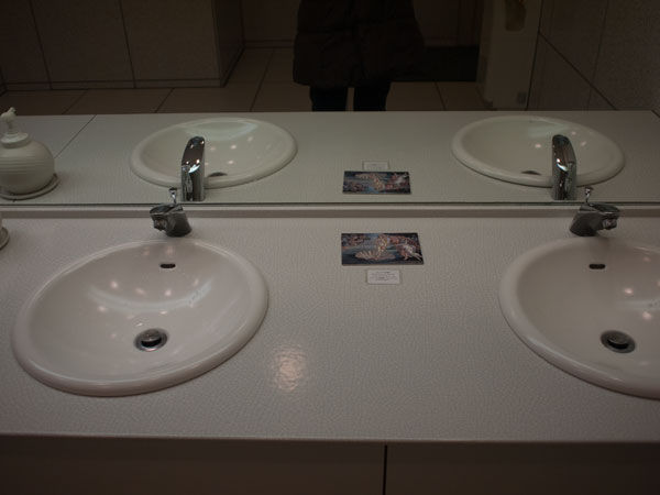 お手洗いの洗面台にも絵画がはめ込んであったりしました。