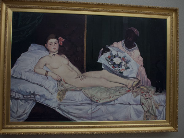以前、うさ夫と、森村泰昌さんの「もりえんなーれ まねぶ美術史」に行ったことがあるのだけど、森村さんの有名絵画に自分をいれちゃう作品で、このオランピアもあるんです。