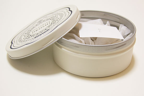 マットな丸い缶入りパッケージ。