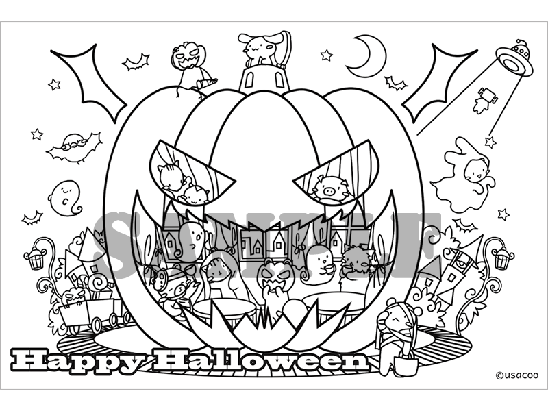 ついでに、ちまちました線画イラストが楽しかったので、同じ絵柄で塗り絵ポストカードを作りました。